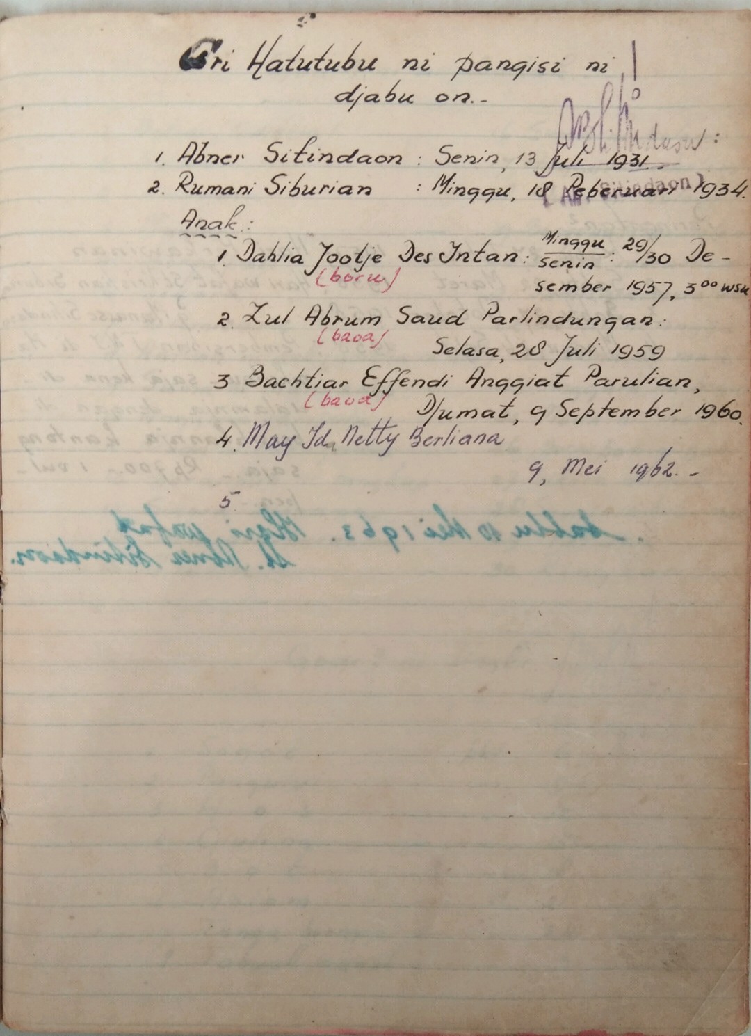 2. Zul Abrum Saud Parlindungan (Putra) : Selasa, 28 Juli 1959.