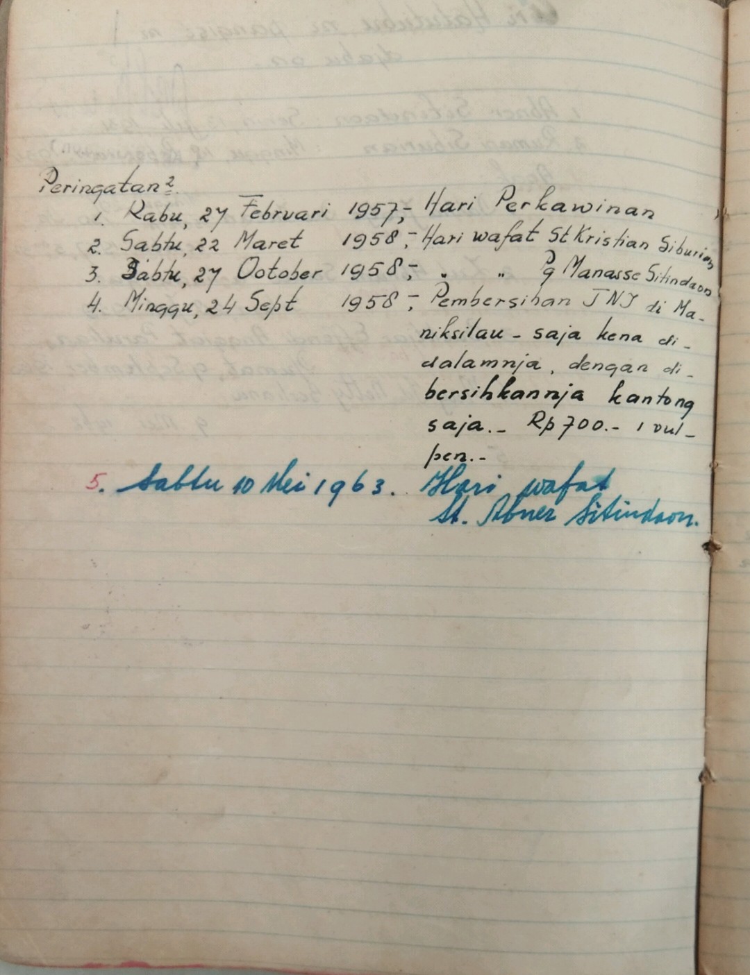 3. Sabtu, 27 Oktober 1958, merupakan hari wafat atau meninggal bapak kandungya, Pangulu Manase Sitindaon.