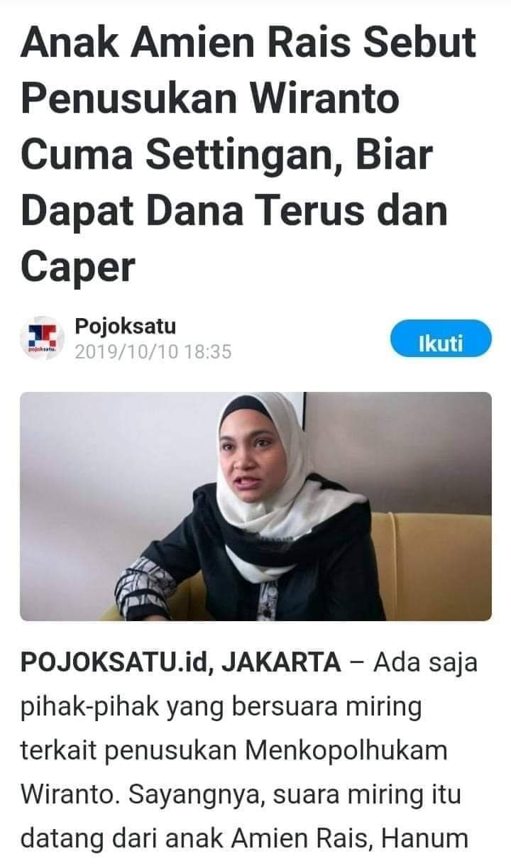 Hanum menuliskan itu sebagai anak seorang yang bernama Amien Rais. Seorang politisi yang termehek-mehek mengejar kekuasaan.